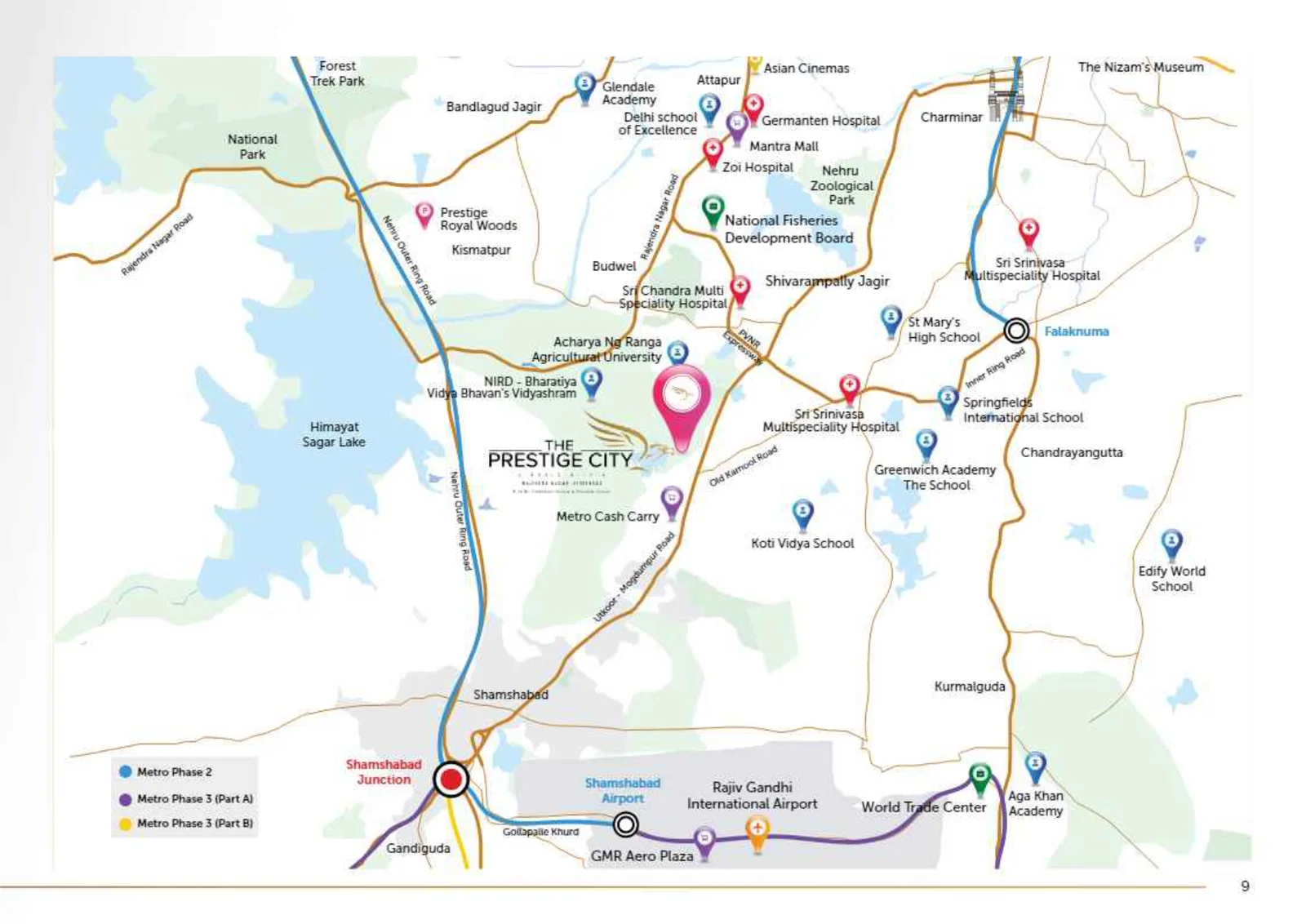 Upcoming mall, school, and healthcare facilities within the community